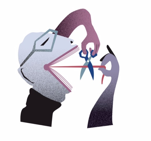 Zwijg (witte) man! ‘Zwijgtekst’ anno nu. Afbeelding van Lars Zuidweg (met zijn toestemming op deze blog geplaatst) bij het bovengenoemde artikel in NRC Handelsblad van Philip Huff (zaterdag en zondag 7 & 8 april 2018).