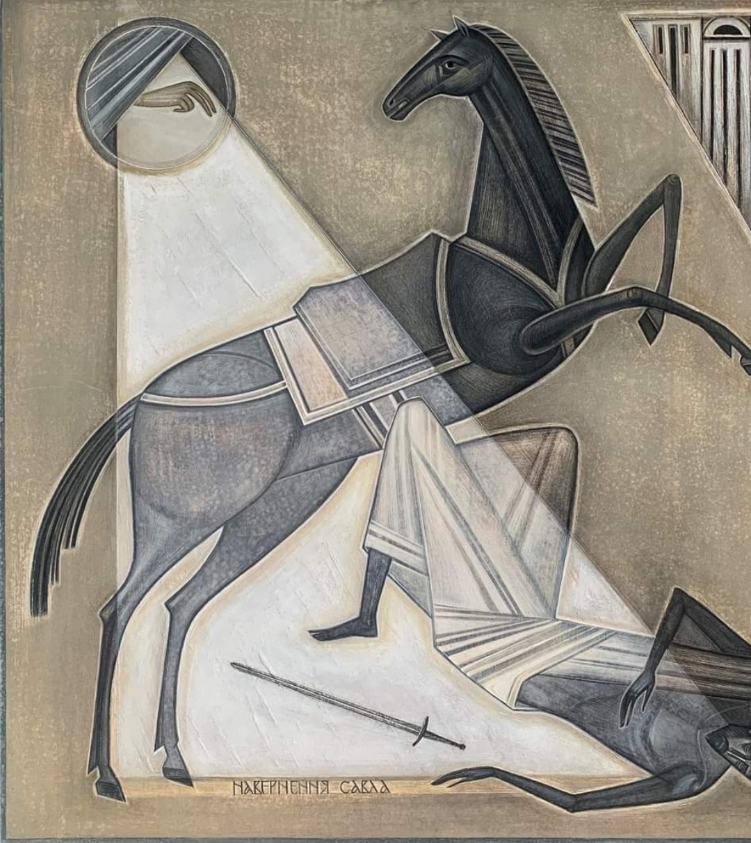 ‘De bekering van apostel Paulus’. Afbeelding icoon van Khrystyna Yatsyniak (met haar toestemming geplaatst).